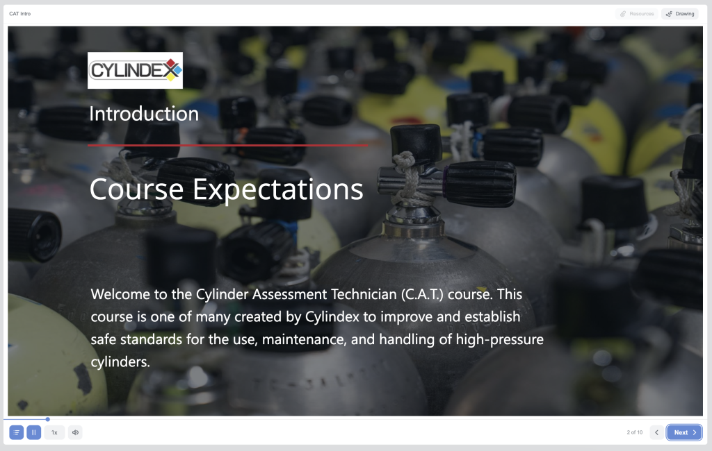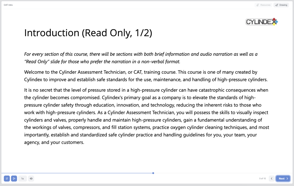 Welcome to the Cylindex C.A.T. eLearning. To maximize the value of this course, we want to outline how to use our eLearning interface.